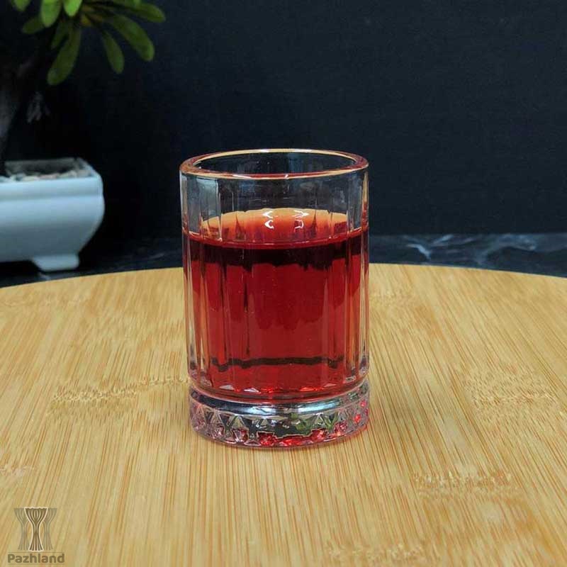 بدنه این شات از بلور ضخیم و مقاوم ساخته شده است که علاوه بر استحکام بالا، جلوهای خاص و اشرافی روی میز پذیرایی ایجاد میکند. قسمت پایین لیوان دارای تراشهای هندسی کریستالی است که نور را به زیبایی بازتاب میدهد.