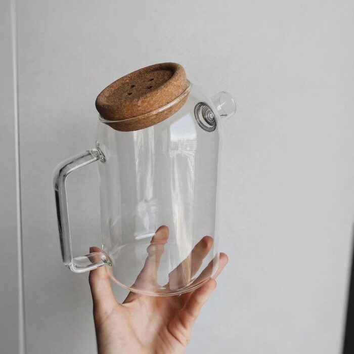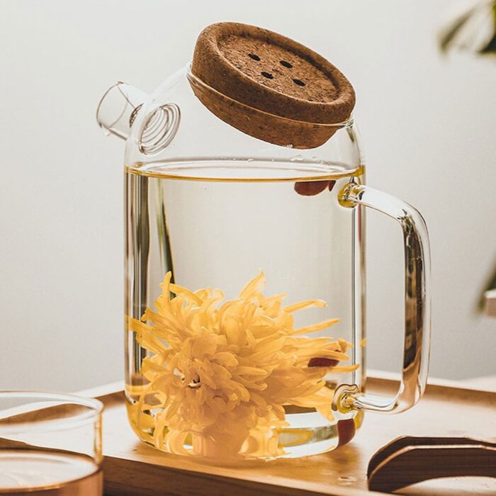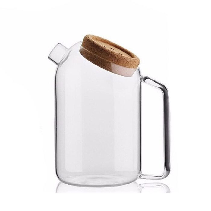 خانه چای خوری قوری پیرکس درب چوب پنبه طرح دکمه 1200ml