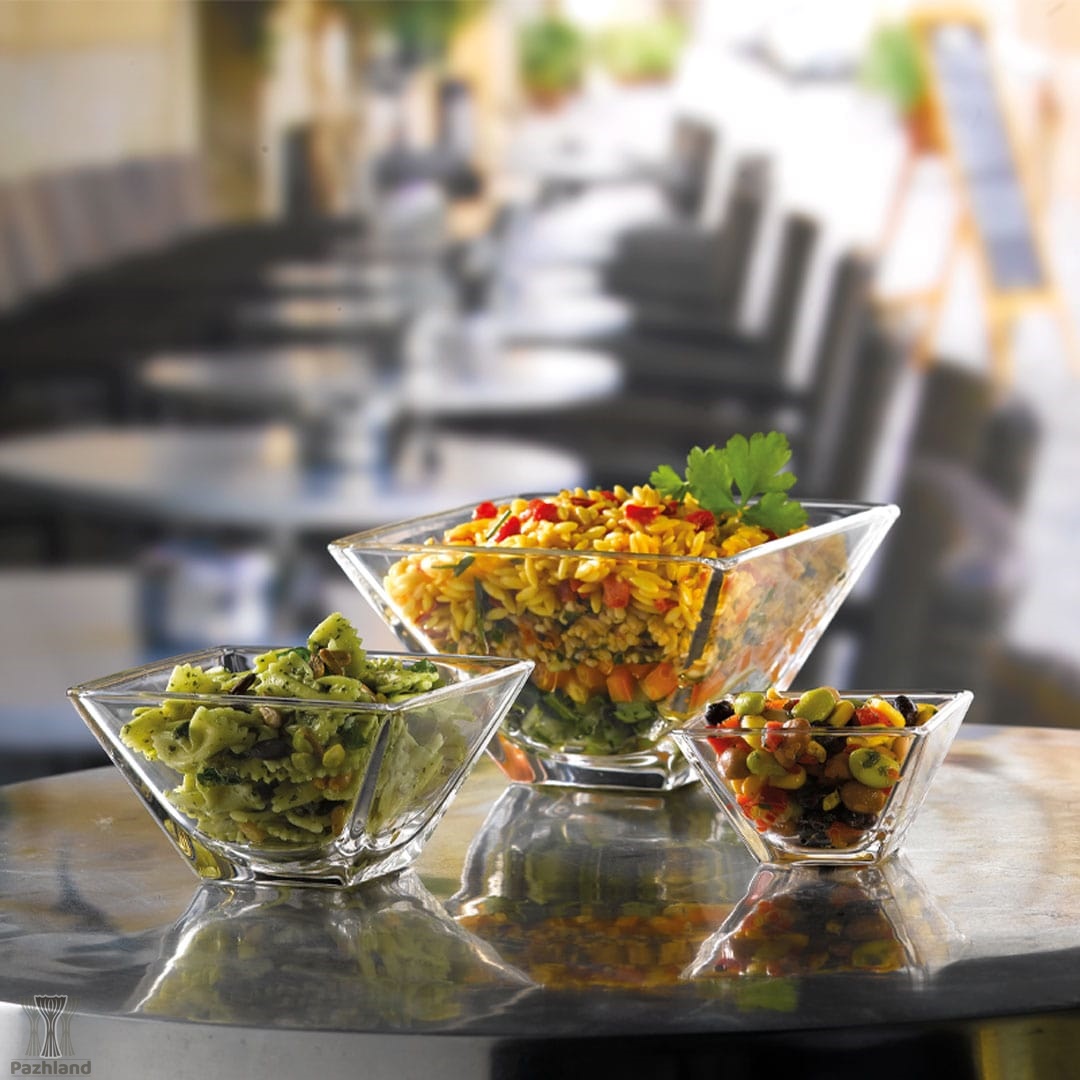 طراحی مربعیشکل این کاسه، سبک مدرن و مینیمال را به نمایش میگذارد و بهویژه برای سرو دسر، سالاد و پیشغذاهای خاص بسیار مناسب است. ضخامت متعادل بدنه، علاوه بر دوام بالا، باعث میشود شفافیت کریستال کاملاً حفظ شود و محتوای درون ظرف با جلوهای زیبا دیده شود.