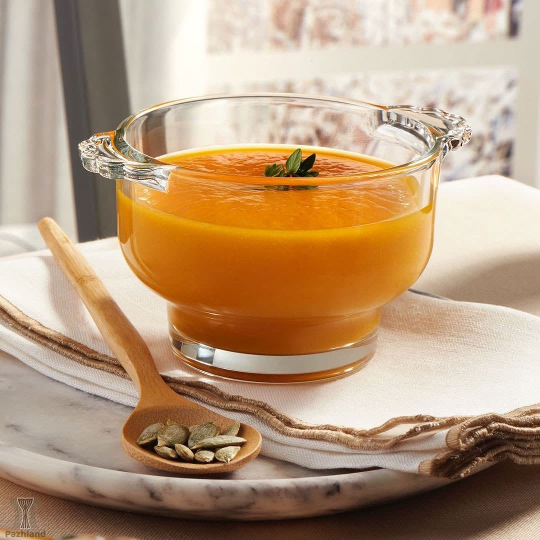 کاسه Soupy از بلور شفاف و مقاوم (Crystal Glass) ساخته شده و ضمن درخشش بالا، استحکام فوقالعادهای در برابر حرارت و ضربه دارد. بدنهی صیقلی و فرم متناسب آن باعث سهولت در استفاده و شستوشو میشود.