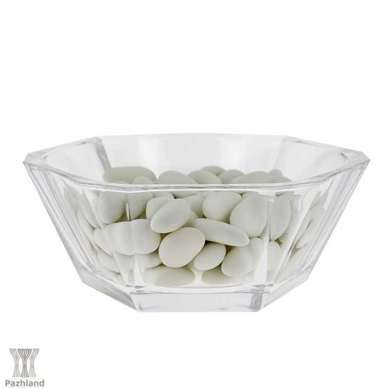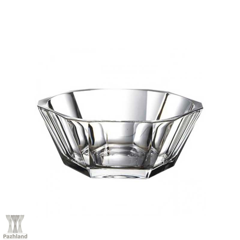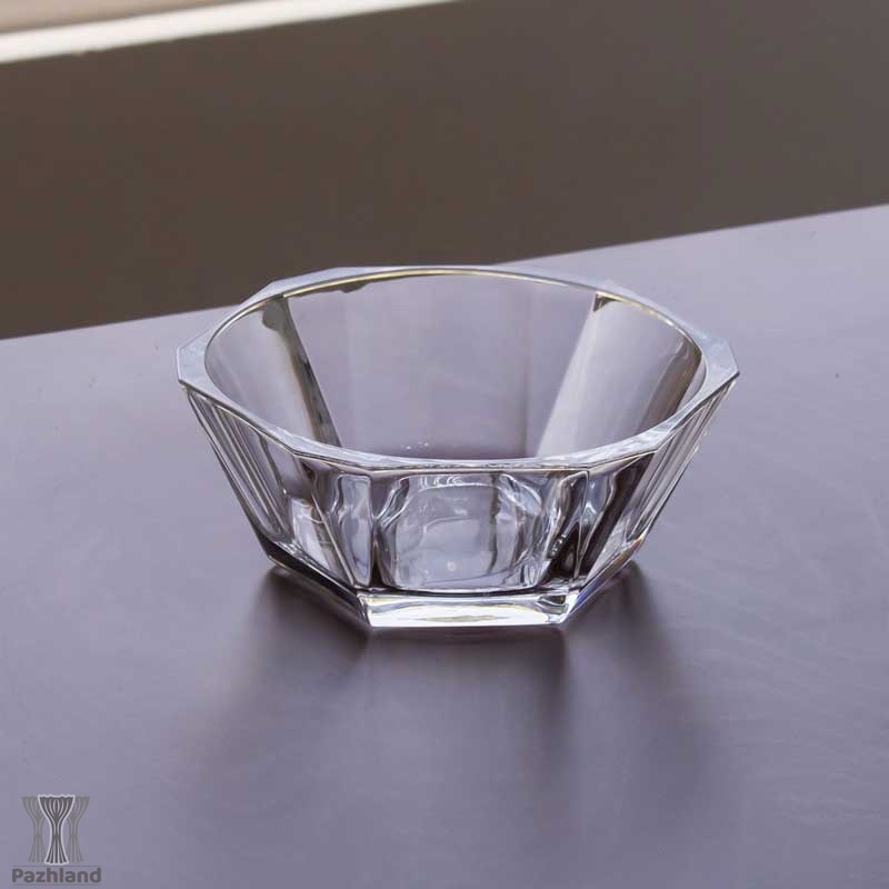 بدنهی بیرونی این کاسه دارای دوازده وجه زاویهدار است که با بازتاب نور جلوهای درخشان و خاص ایجاد میکند؛ در حالی که سطح داخلی آن کاملاً صاف و گرد طراحی شده تا جلوه غذا یا دسر درون آن را برجستهتر کند.